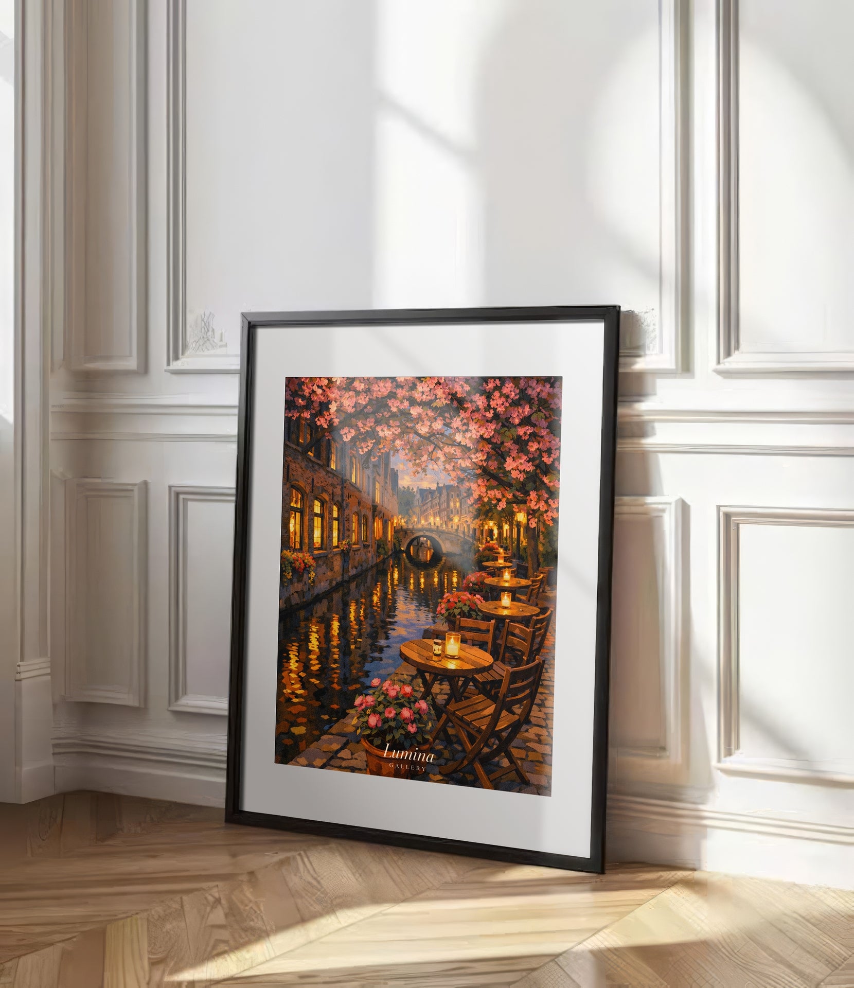 If you love the feeling of evening walks through charming European streets, candlelit cafés, and peaceful canals, this artwork captures that timeless atmosphere beautifully.